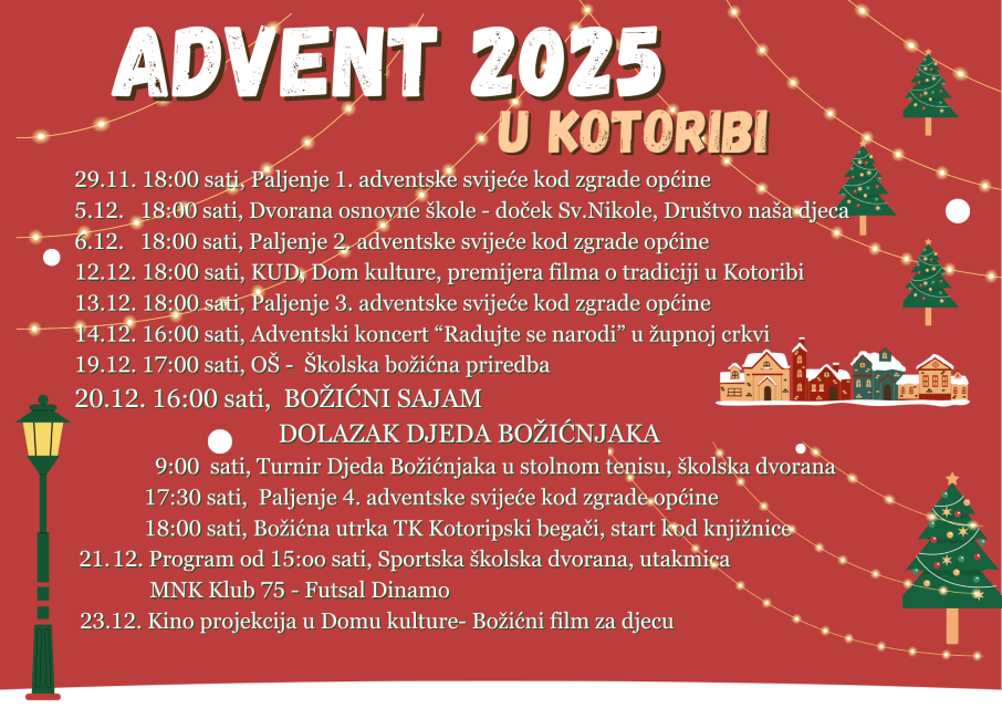 Advent je pred nama! Pogledajte raspored i pridružite nam se na događanjima koja smo pripremili. Veselimo se zajedničkom druženju i stvaranju blagdanskog ugođaja.