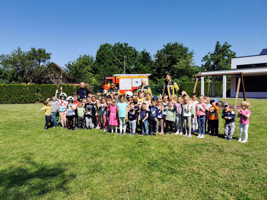 Od najmlađe djece u jaslicama pa do djelatnika vrtića svi su odgovorno sudjelovali u uspješnoj evakuaciji iz vrtića, a kasnije je bila prilika da se djeca upoznaju s vatrogasnim vozilom i opremom, ali i okušaju u vatrogasnim vježbama.